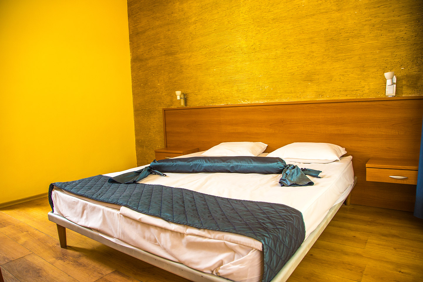 Фамилната двойна стая е достатъчно просторна, за да се чувствате удобно – и вие, и децата ви. Може да избирате между стая с двойно легло (160 х 200 см) или с 2 единични легла (90 х 200 см).