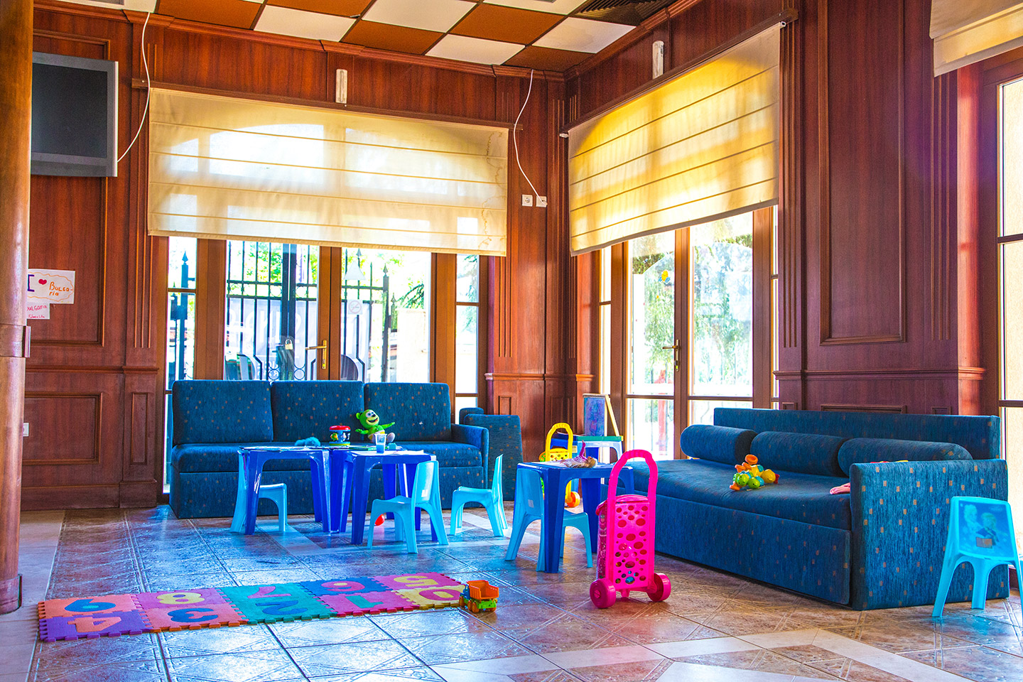 2 детски басейна, детска площадка, закрит клуб със забавления и активности за деца и детска анимация ви дават възможност да споделяте моменти заедно и да поверите детето си на компетентни грижи, за да обърнете внимание на себе си и на партньора си.